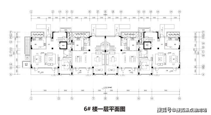 公示户型,6#楼一层边户南向面宽约11.2米,LDKB一体式设计,约7.6米大横厅,南向老人房。中间户面宽约9.2米,同样是横厅设计。