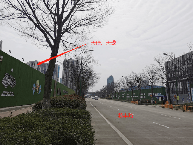天禧东侧为在建商业商务地块,再往东为西子国际,北侧靠近河道及观景平台,东北侧即为理想银泰城,西侧为新丰路,南侧为南苑街;