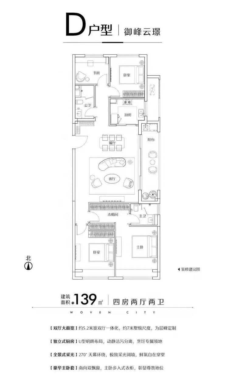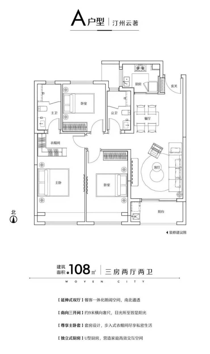 优点:两房朝南;U型厨房;公卫干湿分离;