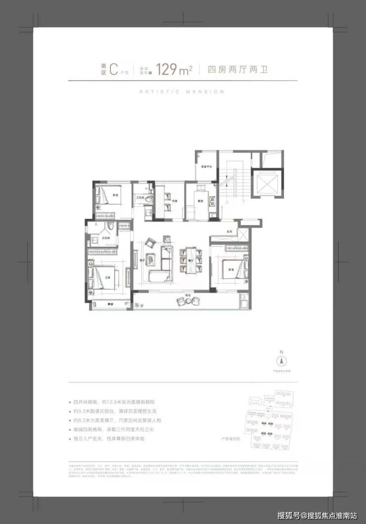 主力户型:高层约98㎡户型96套,125㎡户型96套,洋房129㎡户型33套,特殊户型115㎡2套