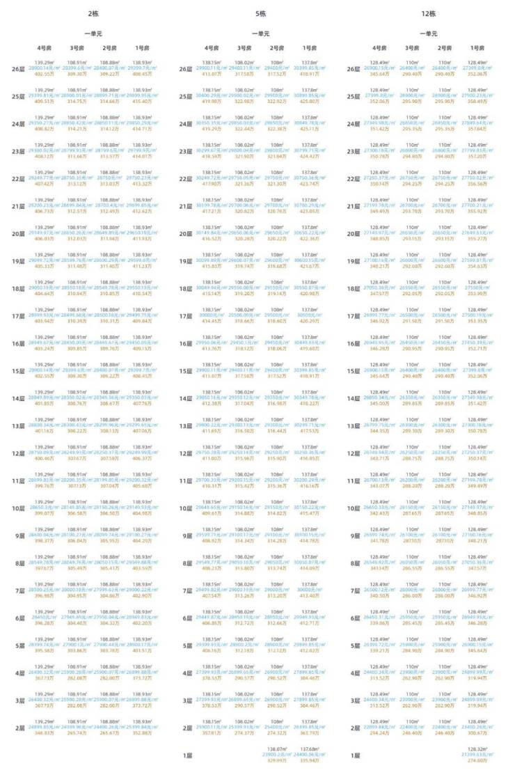 2、5、12号楼东边套高于西边套约5-6万元,5号楼可优选西边套,2号楼优先选择东边套,12号楼可优先选择西边套;顶楼价格较高,建议仅作3F前的选择。