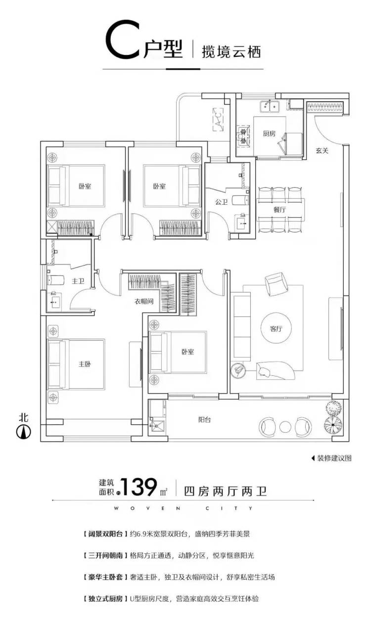 高层约139㎡四房两卫C户型 →