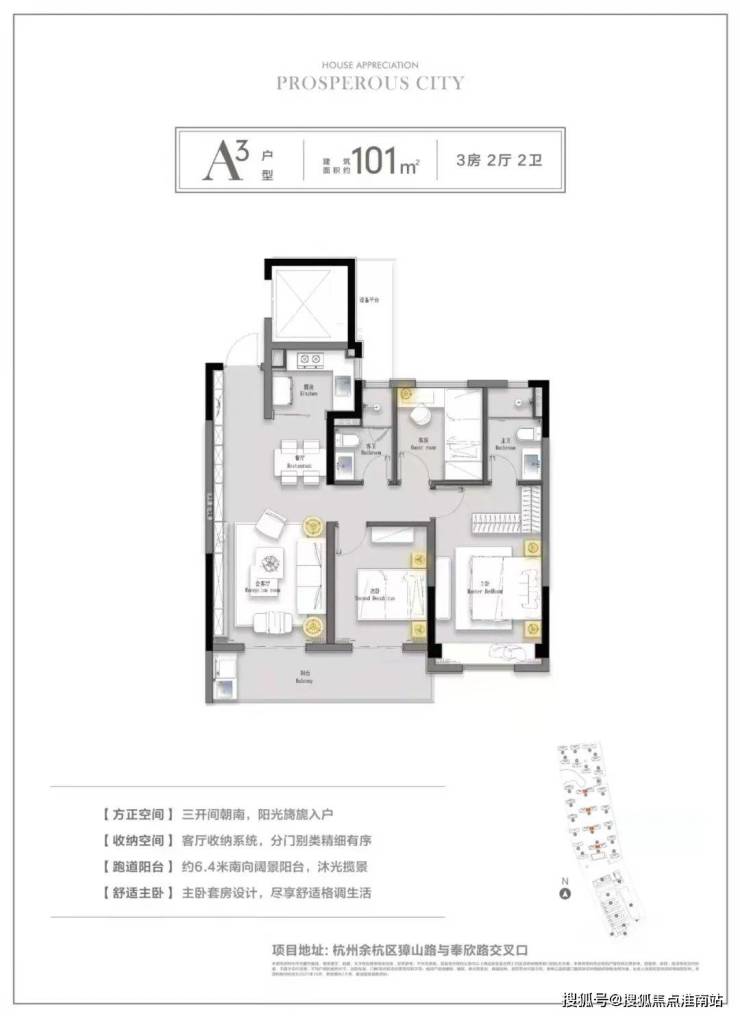 优点:南向带大面宽阳台;公卫干湿分离;U型厨房;小储藏间设计;