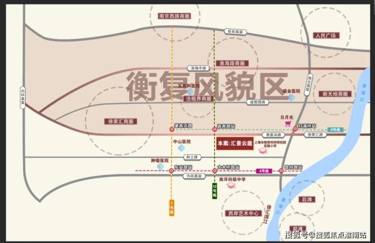 汇景云庭紧挨着徐汇区复历史风貌区,即景泰大厦坐落于斜土路1175号, 步行500米就可以到达9号线和12号线嘉善路站,2站可达徐家汇商圈、南京西路商圈。距离地铁4号线约800米、13号线约1.5公里,内环内得天独厚的地理位置。毋庸置疑这样的地段享受的必然也是城市塔尖级的高能配套。