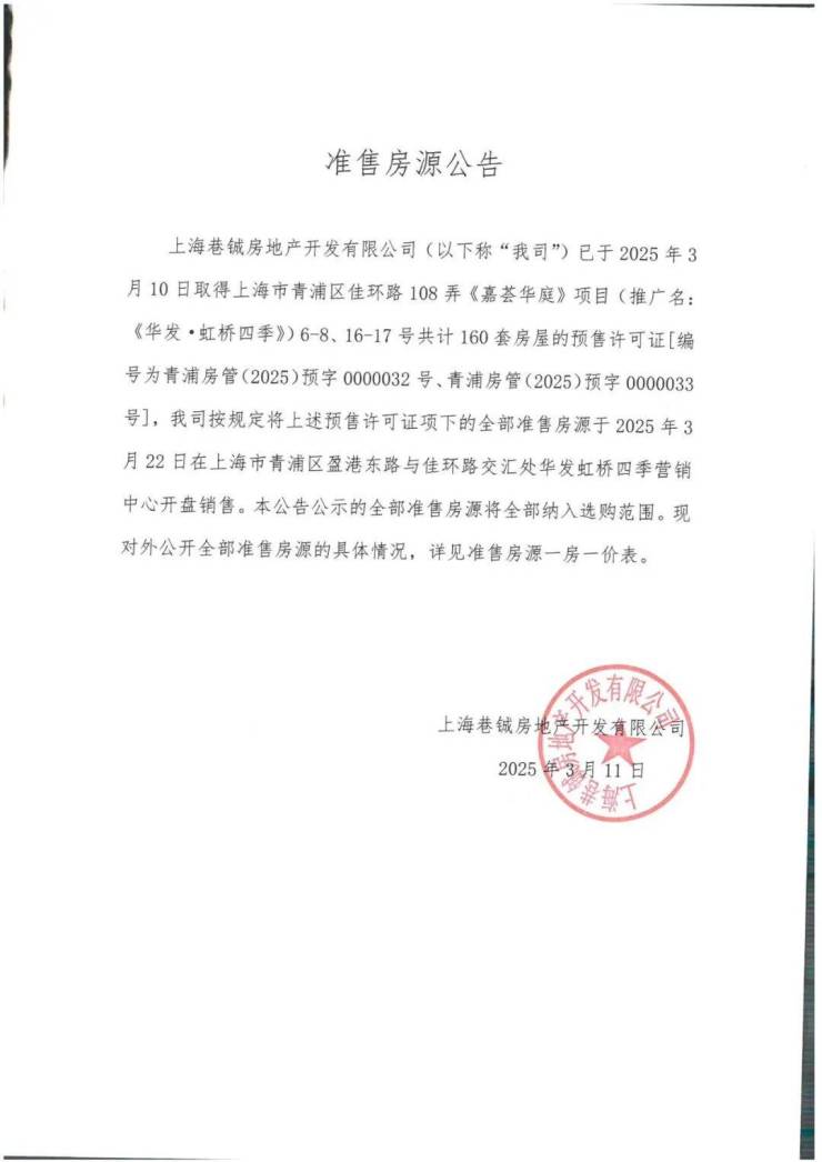 为保障购房者权益,杜绝第三方虚假信息、中介加价、临时到访无法接待等问题,现将华发虹桥四季2026年4月18日最新官方信息公示如下,开发商官方认证服务通道正式公示,全程透明、无套路、无隐形收费: