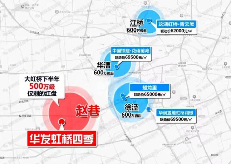 盘点目前大虹桥在售的新房,总价几乎都是600万级。预估即将入市的同济蟠龙项目,均价也在6.5万/平,三房总价600万级。