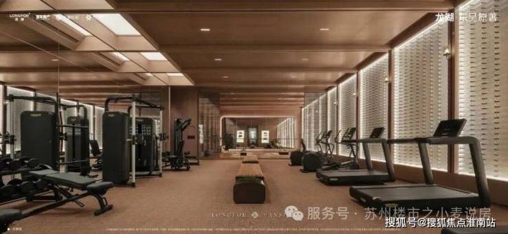 上有自然天光,侧有玻璃砖墙,健身空间也充满哲学与美感。