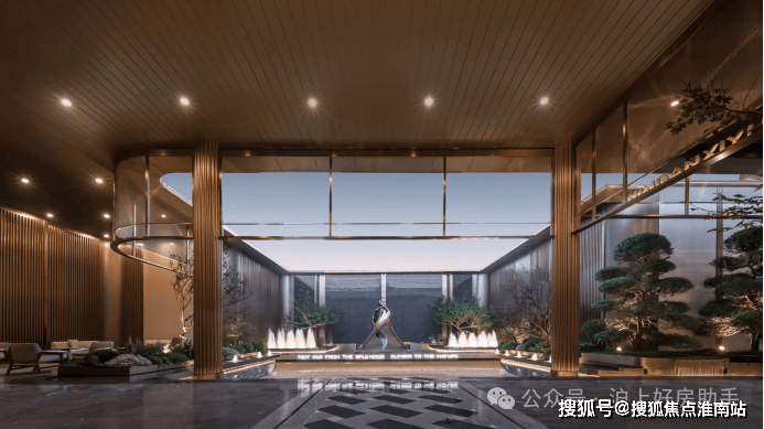入口处酒店港湾式落客空间,艺术感造型树,蓝翡翠奢石达到第一眼的惊艳;内部精致典藏的水院空间,以雕塑、喷泉水幕、造型树经典组合,打造全区景观点,更大地扩充与景观的接触面,度假的松弛感油然而生。
