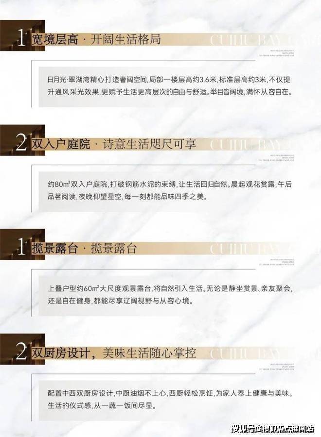 日月光深耕房地产开发领域多年,始终坚守高品质人居理念,致力于“少墅派,为少数”的生活方式,为改善型人群提供更高居住体验。翠湖湾项目从品质标准出发,围绕建筑工艺、舒适度、智能化、绿色环保等方面,全面提升居住体验: