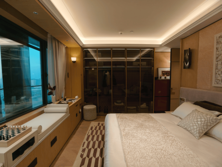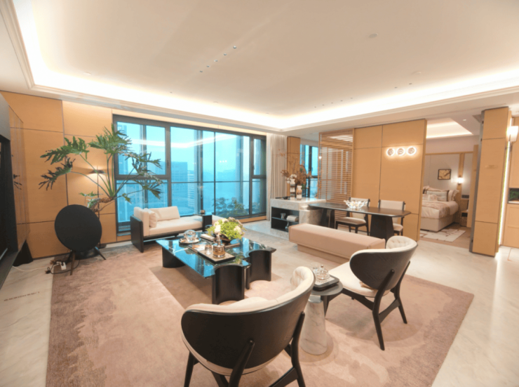 室内4000元/㎡的标准,更是把安高·海印华庭的“地位”,拉升至了市区12万+同等水平。当其他项目还在用木饰面点缀公区的时候,这里几乎做到了木饰面全屋铺排。