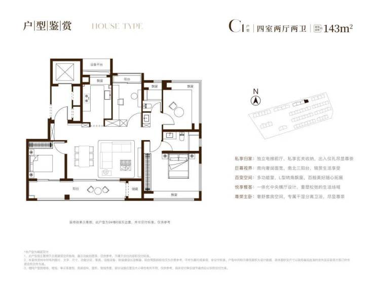 先看在售的建面约143㎡户型: