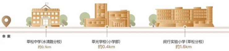 闵实验有四个分校,其中位于莘庄的莘松校区是老牌名校,坊间认为闵实验是放在全上海都能进一梯队的小学,莘松的市重、区重率在闵行区的公办里也是数一数二的,而且这所学校水清路校区就在项目正对面!(仅为周边学校资源闸述,幼儿园、小学、中学等教育设施的就谈政策均以政府教育主管部门规定的方案为准,期房不承诺学区)