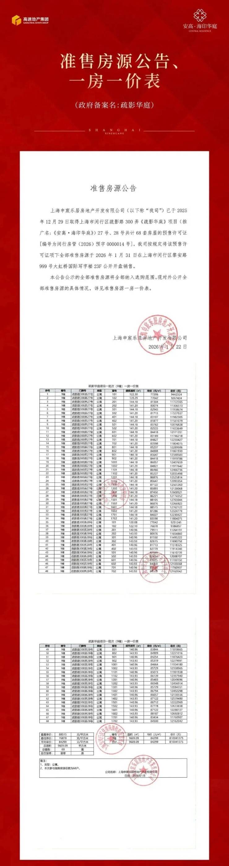 莘庄副中心“十年一遇”纯新改善盘【安高·海印华庭】逆市热销,首开去化8成。在售推约120-143㎡3-4房,均价84299元/㎡,实得率约92%,目前售楼处&样板房已开放。