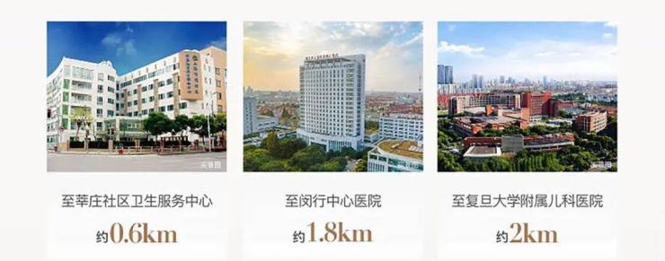 项目直线距离约3km范围内闵行中心医院、闵行中医医院、复旦大学附属儿科医院、莘庄社区卫生服务中心等优质医疗资源汇聚!