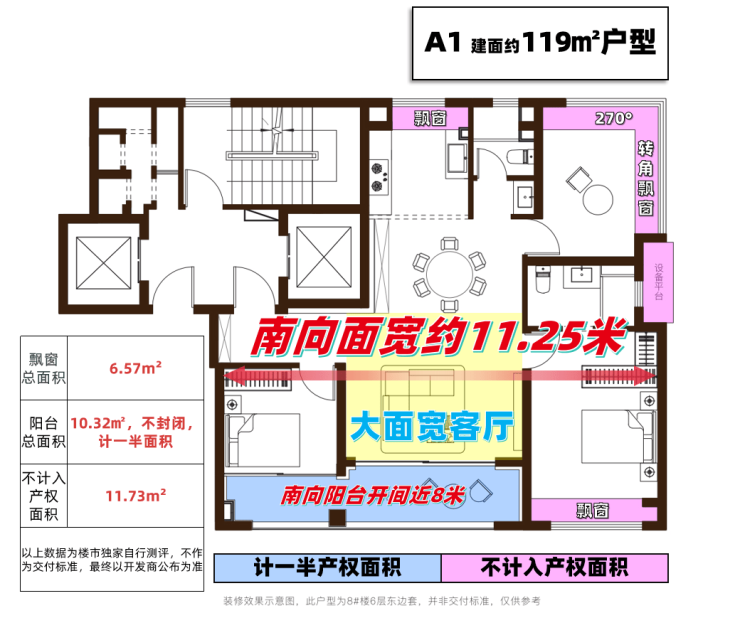 给大家实测一波,建面约120㎡的套内空间实际可利用率,达到了87.7%(含飘窗、阳台,以上数据自行测评,不作为交付标准,最终以开发商公布为准),足以媲美市面上建面约140㎡的户型,不计入产权的面积超过11㎡,就按9万/㎡预期算,买这套房足足可以省下近百万!