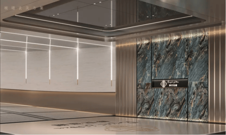 项目车库采用贯穿式鱼尾灯坡道和超耐磨地坪,过道全部是精装吊顶!地下管道和局部区域也贴心地进行了二次包裹。而地库中最亮眼的就是豪华车马厅,采用水磨石、水晶漆、铝饰面、大板砖、立柱石材包边,高级感满满!
