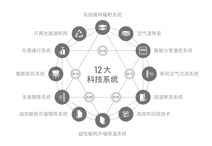 科技系统:毛细管网辐射、全屋新风(PM2.5 过滤 95%)、同层排水