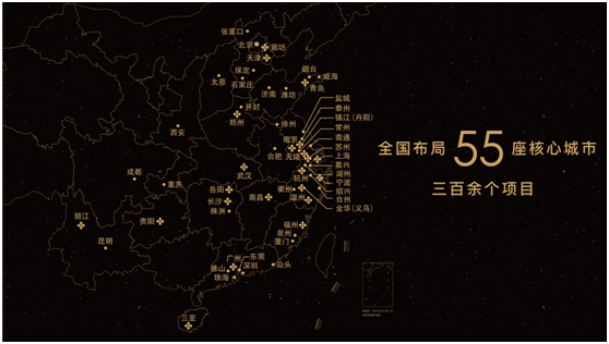 现已布局全国55座核芯城市,精铸300余座烫金版图。(数据来源:中国金茂官网)