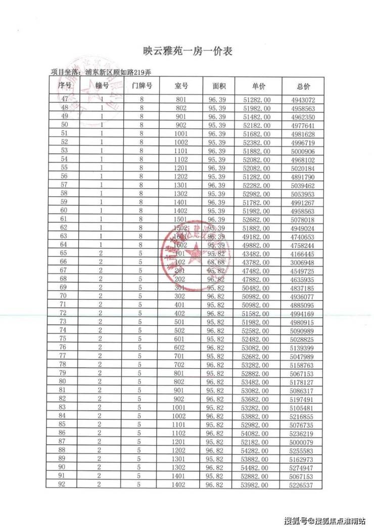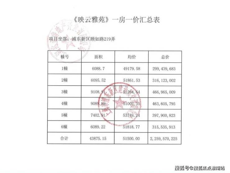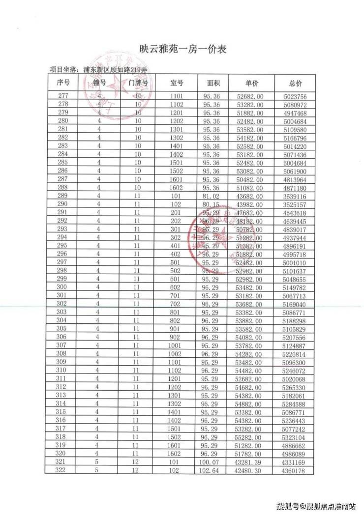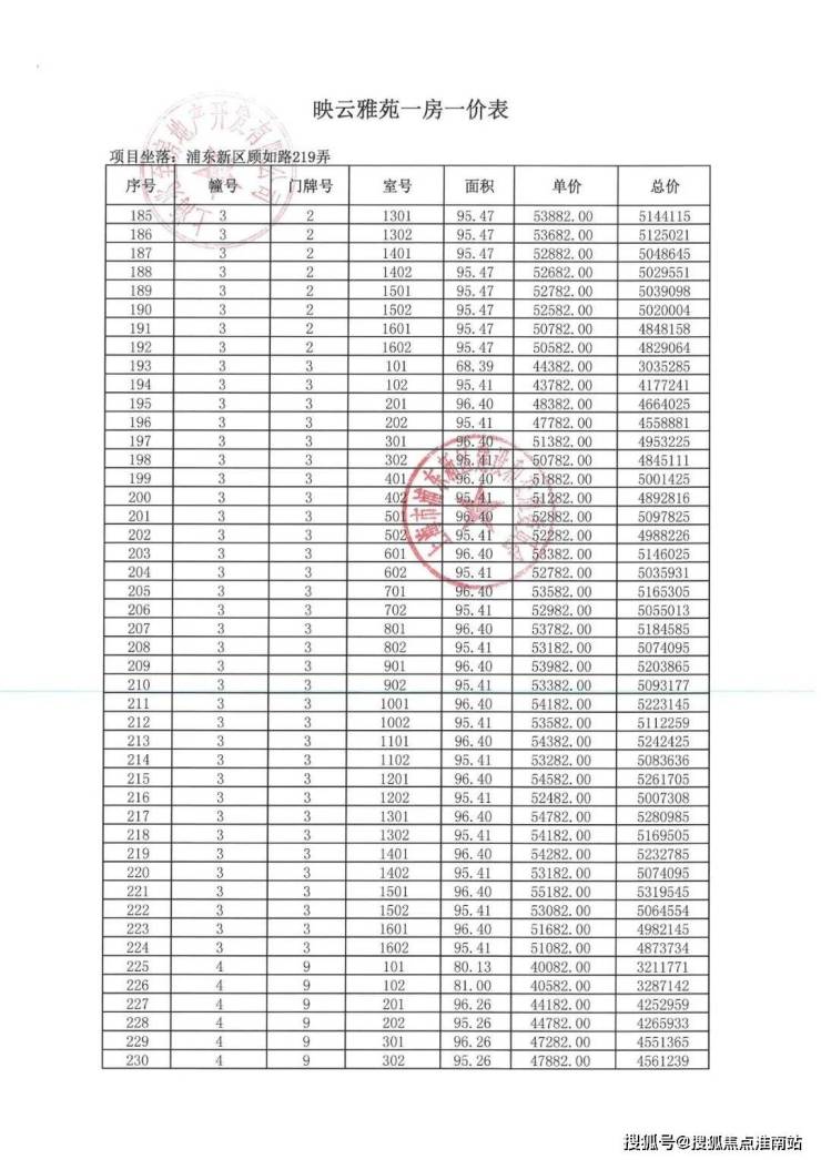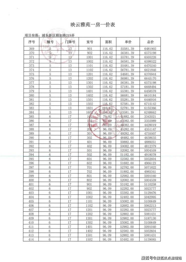 项目一房一价表▼