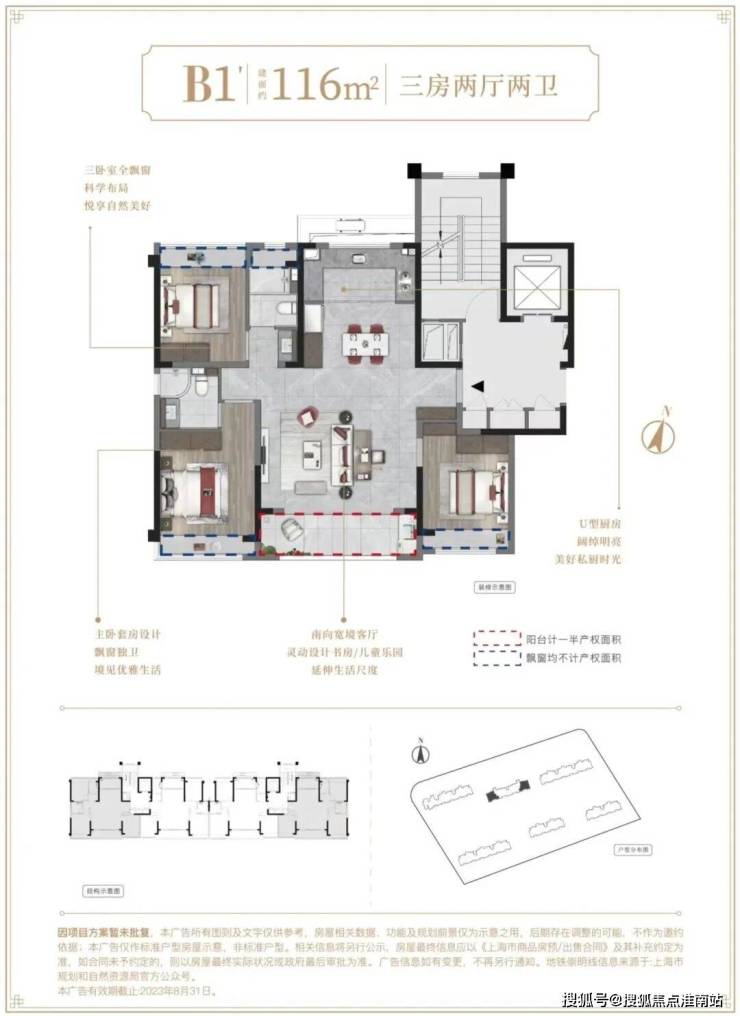 建面约116㎡3房2厅2卫▼