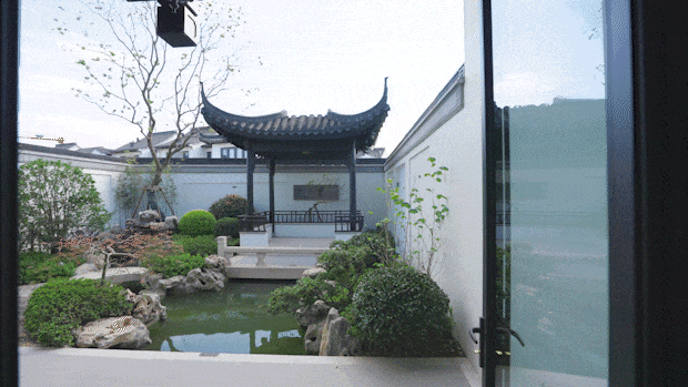 璟雲拱桥、山水叠石、六角闲庭,处处皆是惊喜 。园中古建,均采用传统木结构建造,尽可能减少现代建筑手法的参与,以期还原最真实的苏式园林。