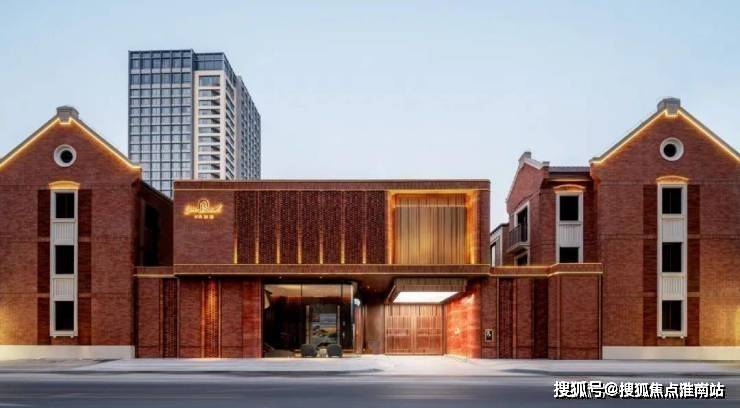 例如,在社区入户,目前已经完美呈现出来的,有强烈视觉冲击的立面 大量的红砖、红洞石及大面积的落地弧形玻璃搭配的相得益彰,整个门头既有厚重的历史感,又不失极简主义的现代美。