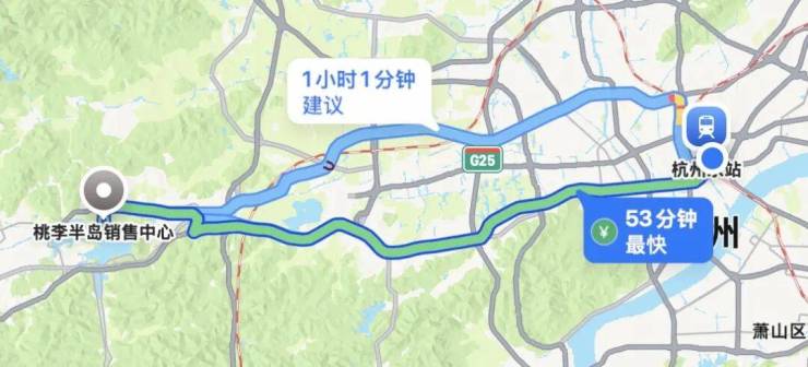 小胖君从杭州东站开车,一路畅通无阻,约50分钟就麻利地抵达了桃李半岛。若从西溪、未来科技城过去,那就更快捷了。