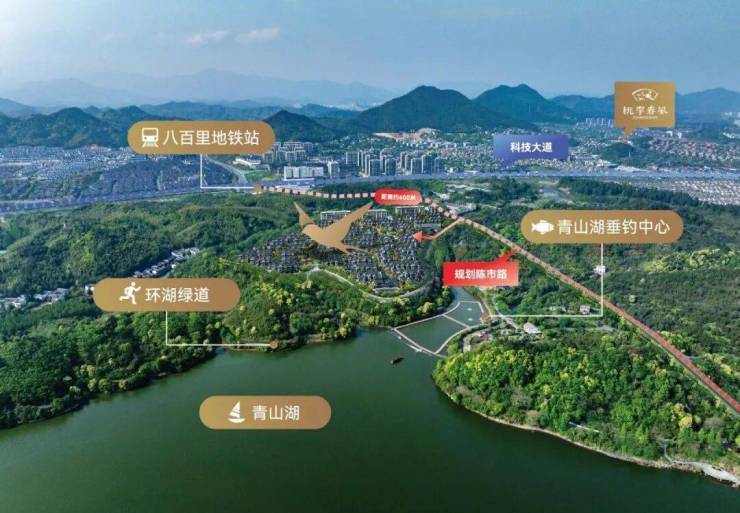 项目择址科技大道旁,边上就是地铁16号线八百里站,直抵第三中心核心区,可切换3号/5号线,通达主城各个高能级区域。