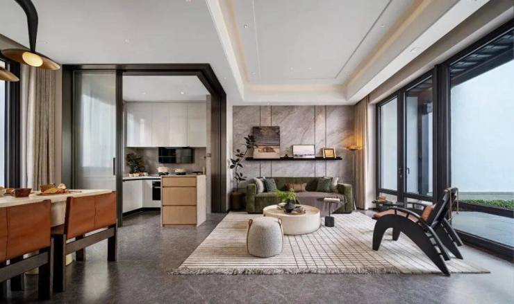 更夸张的是,项目部分大户型利用地形,形成“双庭院双首层”,“室内空间”直接延伸至庭院,如此开阔场域,和居住者气运相通,伫立于此能感受到由内而外的神清气爽,畅快无比。
