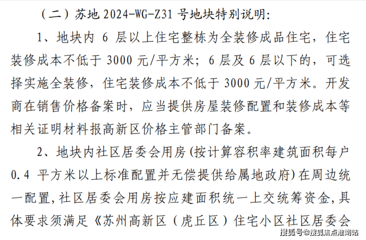 2、6F以上住宅全装修交付,装修成本不低于3000元/㎡,6F及以下住宅可装修或者毛坯交付,没有面积要求。