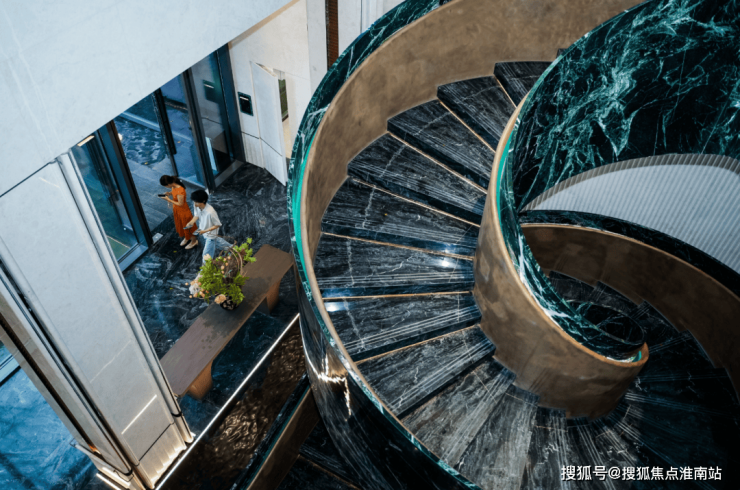 艺术旋转楼梯,进口Prada绿奢石勾勒出绸带般的轻盈曲面,每一个角度,每一次驻足,都宛如身处优雅画卷;