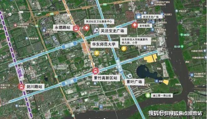 地块所在的紫竹区域占据浦江上游第一湾独特地理位置,核心区域有闵行第一大湖兰香湖,水域面积广阔,岸线绵延,湖光潋滟。