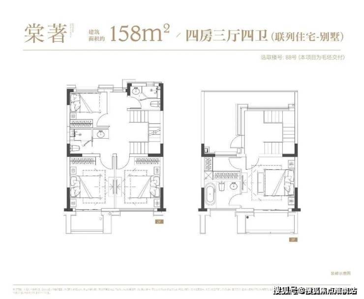 上叠户型4房2厅3卫,三层会客区,四层居住区,阳台+露台+飘窗设计,附加空间非常大,在别墅类产品中实属罕见!