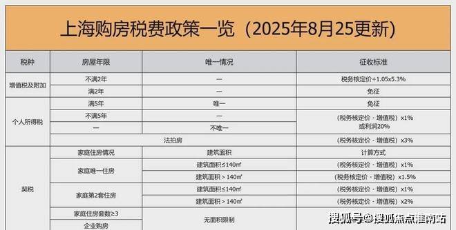 三、上海2025年8月最新购房税费政策