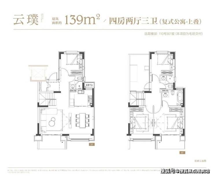 项目叠墅户型有建面约142㎡下叠,建面约139㎡上叠。