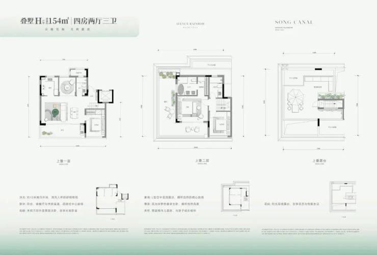 上叠大光厅、L型空间花园露台、屋顶岛境露台。