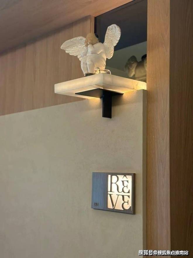 从电梯厅开始,就是酒店式定制化设计,弧形顶设计的电梯厅,门牌上设计了玉石托盘,可以放置家庭独有的摆件,注重仪式感的同时更具高定私享趣味性!
