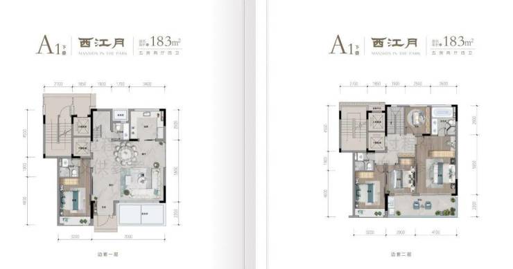 园林设计灵感来源于临平山上塘河,引山水入园,演绎宋式精工居所,整体遵循宋代江南水乡的古城肌理,展现大宅的隐奢调性,营造出“居山水、观天地”的空间意境。三进二庭五园的山水轴布局,两轴九景四时的极致意境生活。