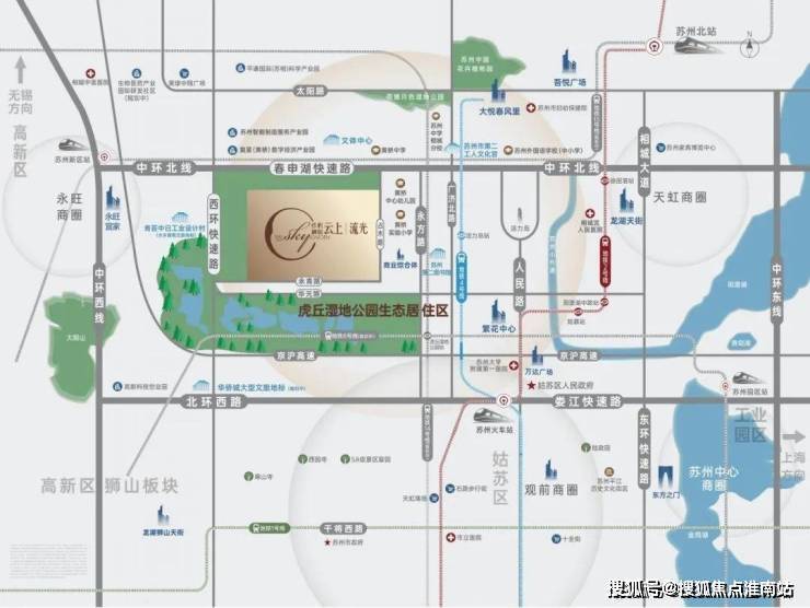 项目站位春申湖快速路一线,速达姑苏区、园区、新区等都会圈。承接中环房价3W+发展趋势,潜力无限。项目毗邻虎丘湿地公园生态绿境,不可复制的自然生态+丰富产城规划,对标纽约中央公园、伦敦海德公园、上海世纪公园,拥有更大体量,发展前进可期。