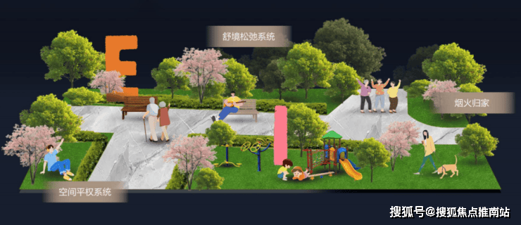 联发·时光新澍以“全场景松弛系统”为核心,将景观划分为静音治愈、亲宠陪伴、自在休憩、街角松弛等四大功能场域