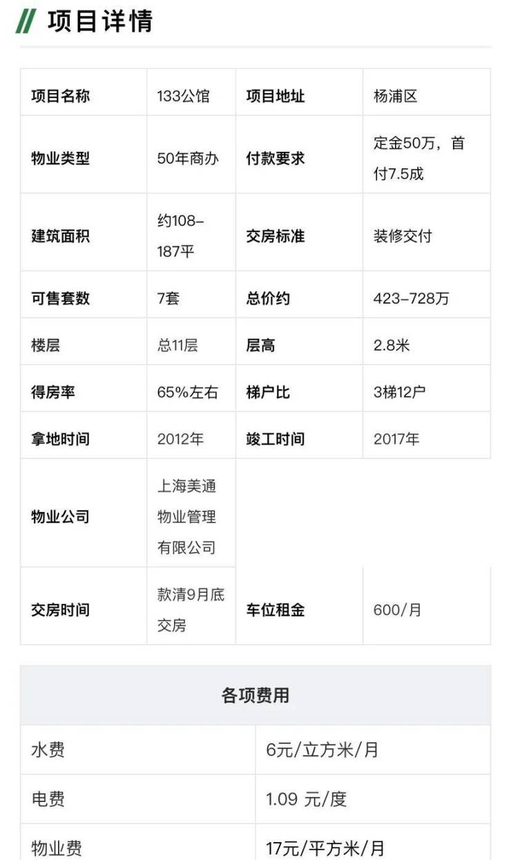 133世界广场备案名绿源天地广场,别名鼎藏八筑,2016年10月7日开盘,2017年11月30日交付,目前在售142-497㎡大平层、83-148㎡4.2米微loft复试公馆,参考均价33000元/㎡,总价约468.6万起。项目总高11层,物业费17元/㎡·月,由上海文化银湾物业管理有限公司提供服务。