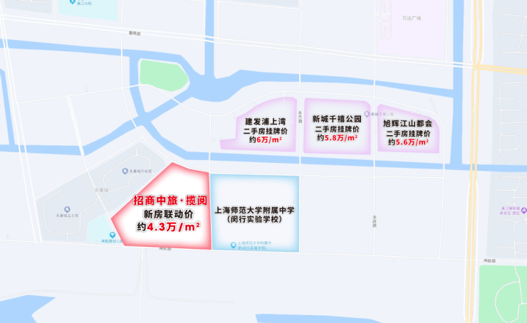 而以前滩为中心,周边生活圈内只有招商中旅·揽阅是约400万级的新房,其余均是起码约700万起的置业地。