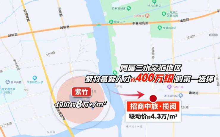 尤其是未来东川路越江隧道开通后,更是一脚油门即紫竹,房价相差一倍有余,对于紫竹人民来说,招商中旅·揽阅真的太香了。