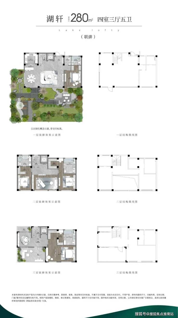 (1)联排:打造约246m²、约256m²(边户)、约280m²三个户型面积,以迭代的联排作品,致敬真别墅的回归
