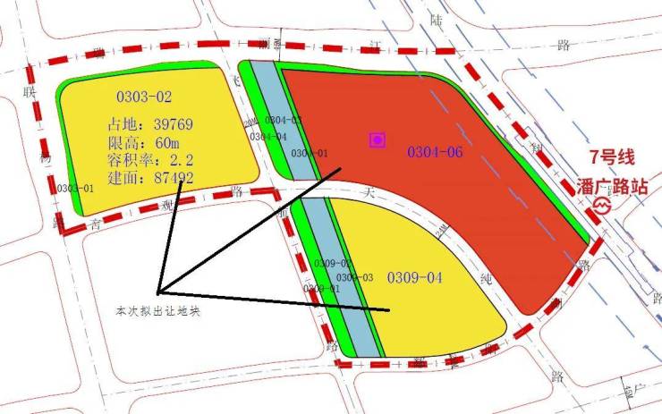 7号线潘广路站:直线距离约300米,步行约5分钟,真正TOD地铁上盖项目