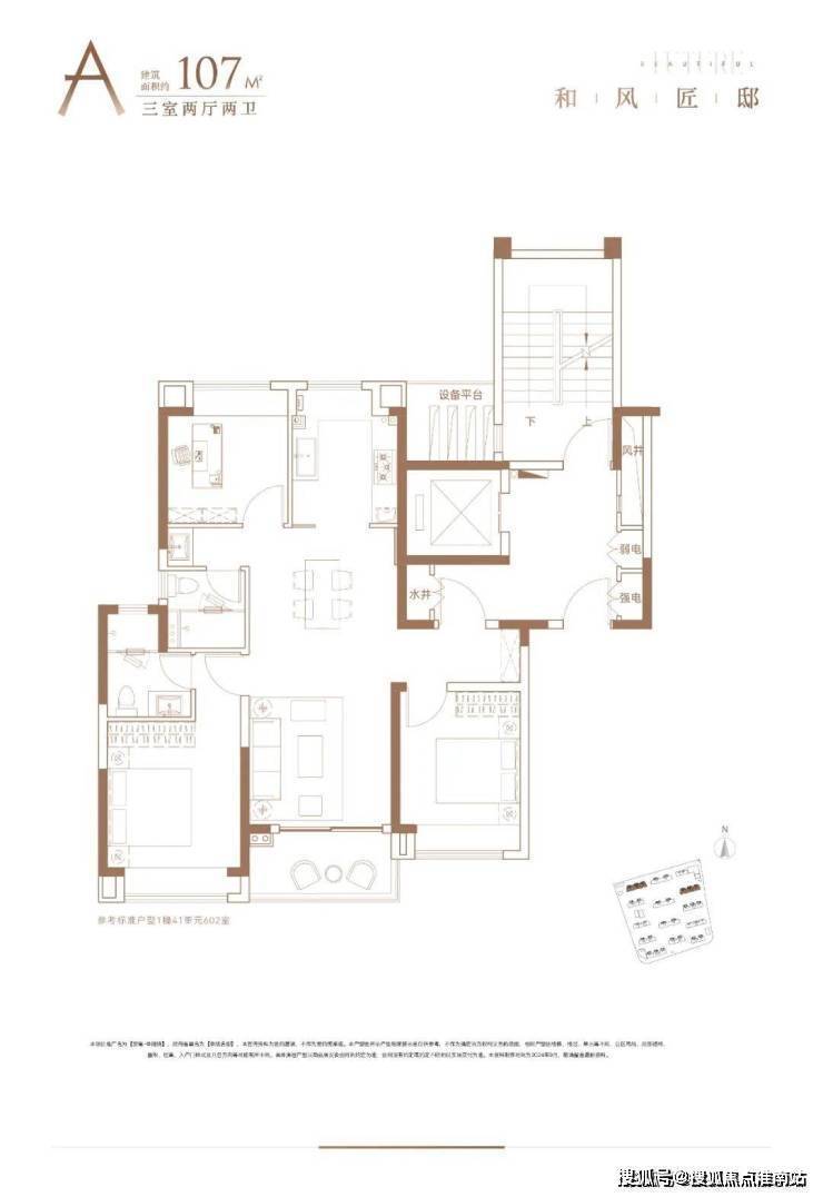 该户型在约107㎡户型基础上有所提升,增加了1个北向卧室空间,更适合三代同堂或多孩家庭改善居住~