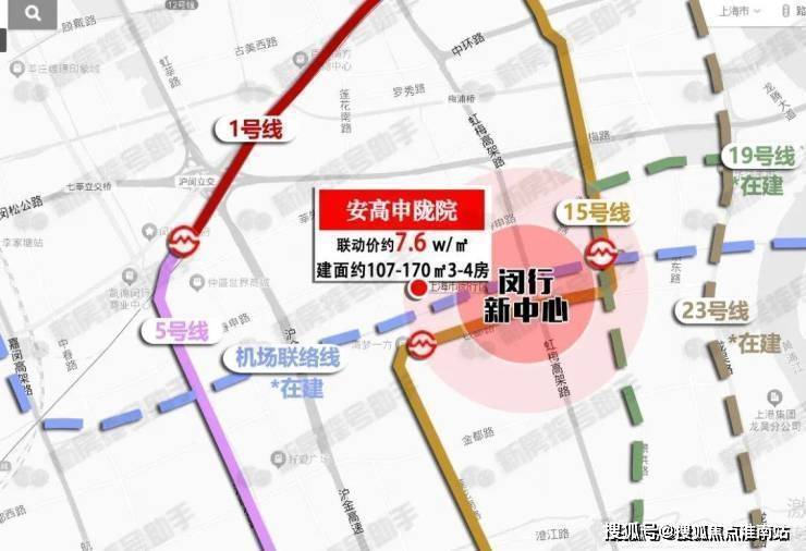 * **“四轨交汇”预期**:项目主要依赖现有地铁15号线景西路站(宣传距离约700米)。其核心交通卖点在于未来规划:待**梅富路跨春申塘桥**建成后,步行至15号线站点将更为便捷;同时周边规划有**机场联络线、19号线、23号线**等,具备“四轨交汇”的远期潜力。项目邻近虹梅南路高架,自驾出行便利。