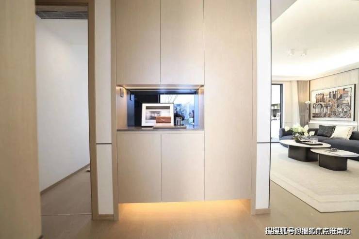 充分为业主考虑收纳空间的使用,玄关处设置定制柜体,回家第一时间换鞋、放包、归置雨伞等常用物品,井井有条的生活从入户开始。