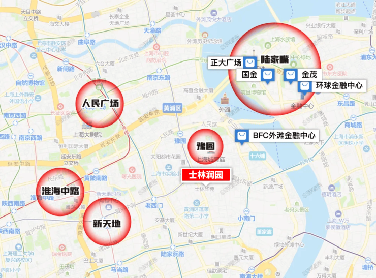 项目位于黄浦区核心,左拥新天地、淮海中路,右抱陆家嘴,北倚人广、外滩,南侧是一路连缀的豪宅区。