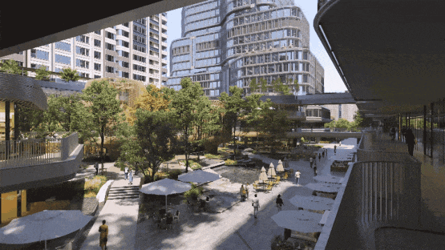 在天空之城,这座生长于轨道之上的“微缩城市”,通过“水、光、绿”三轴与八座天空之桥,将地铁、道路、河道与生态绿地有机缝合,在多重高差间实现地块、交通与生活的立体联通,让人以最自然的步行方式抵达城市的每一个目的地.